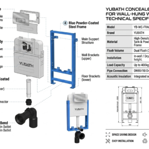 YUBATH Full Frame Concealed Cistern Flush Tank with Push Button