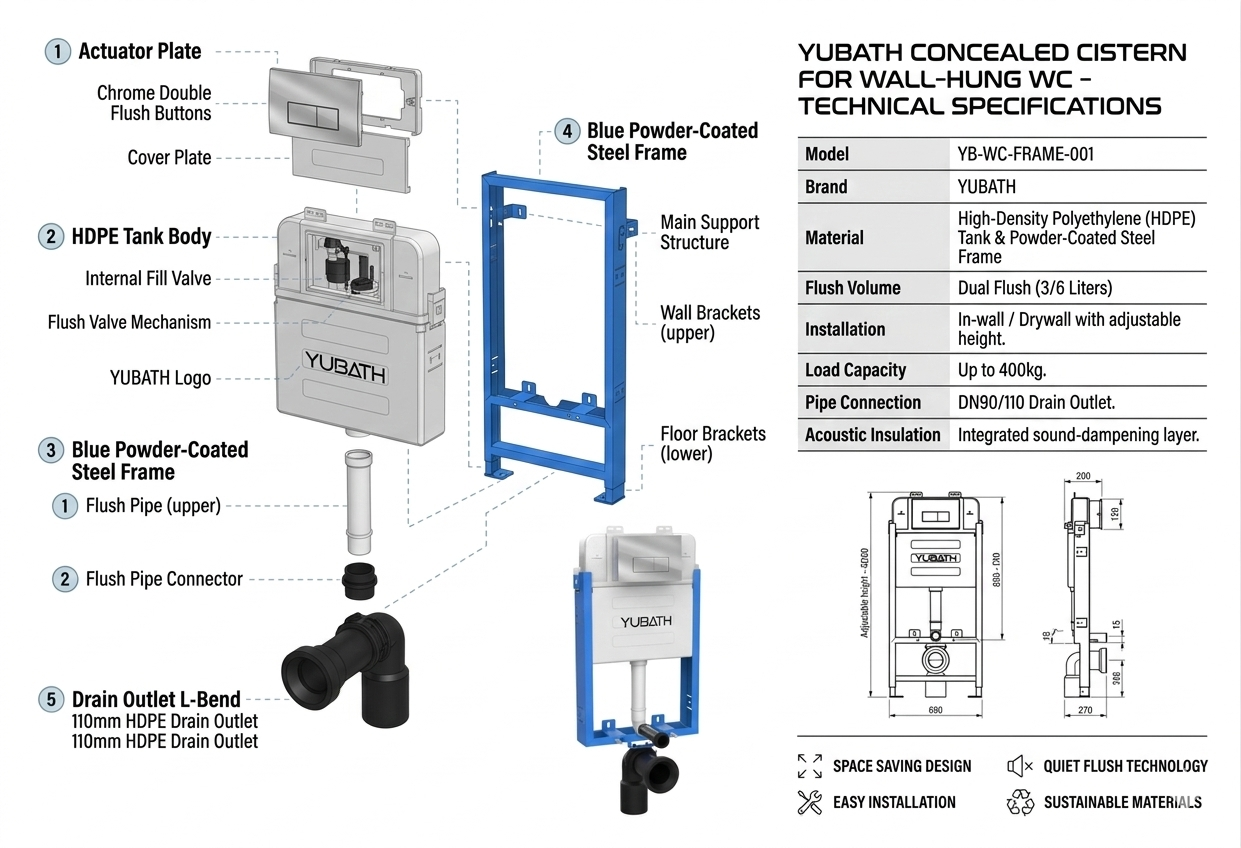 YUBATH Full Frame Concealed Cistern Flush Tank