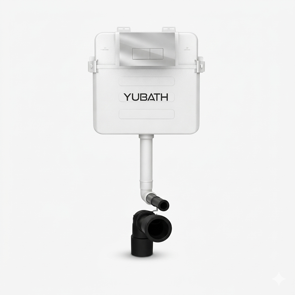 The YUBATH Without Frame Concealed Cistern Flush Tank with Push Button is a modern bathroom solution designed for elegance, space saving, and efficient functionality. Unlike traditional cisterns with supporting frames, this system is fully concealed inside the wall structure, creating a completely seamless look.